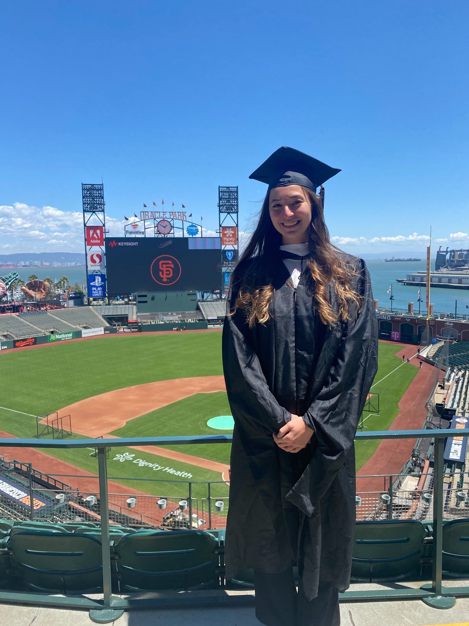 She was offered a scholarship in a DI NCAA Swimming & Diving program as a student-athlete and graduated with a Bachelor of Science in Global Hospitality and Tourism Management. After an opportunity volunteering at the Rio 2016 Olympic Games, she realized her passion for sports never went away and she needed to be working with sports again. In 2021 she graduated with a Master of Arts in Sport Management at the University of San Francisco.